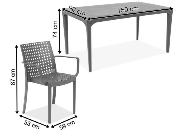 Розміри столу: | 150 x 90 x 74 (h) cm |
